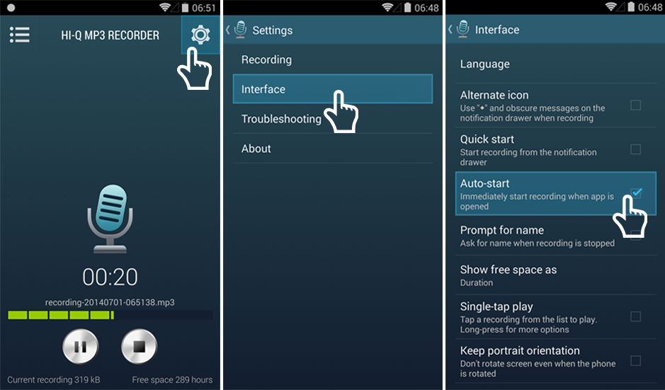 Hi-Q MP3 Voice Recorder merupakan aplikasi perekam suara yang menawarkan fitur yang cukup canggih. Anda dapat memilih bit rate, catatan dari widget, memilih mikrofon, menyesuaikan tingkat input, menyembunyikan ikon rekaman yang tampil di menubar, dan banyak lagi.
